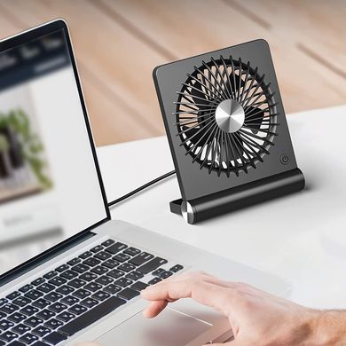 Практичен настолен вентилатор, 3 скорости, захранване чрез USB-C, може да се захранва с адаптер за телефон, външна батерия или от USB на компютър, 5 перки