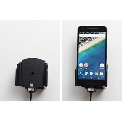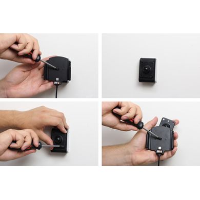 Държачът е много здрав, телефонът не се залепва в него и не вибрира. Държачът има панта, благодарение на която можете лесно да завъртите телефона в хоризонтално или вертикално положение или да го наклоните по всяко време. Скобата се прикрепя към ProClip на Brodit.