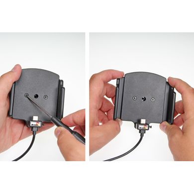 Държачът е много здрав, телефонът не се залепва в него и не вибрира. Държачът има панта, благодарение на която можете лесно да завъртите телефона в хоризонтално или вертикално положение или да го наклоните по всяко време. Държачът се прикрепя към ProClip на Brodit.