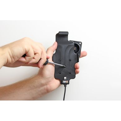 Държачът е много здрав, телефонът не се залепва в него и не вибрира. Държачът има панта, благодарение на която можете лесно да завъртите телефона в хоризонтално или вертикално положение или да го наклоните по всяко време. Държачът се прикрепя към ProClip на Brodit.