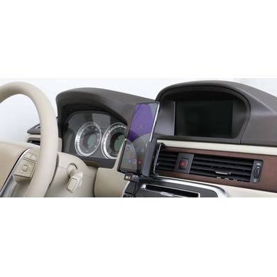 Държачът е много здрав, телефонът не се залепва в него и не вибрира. Държачът има панта, благодарение на която можете лесно да завъртите телефона в хоризонтално или вертикално положение или да го наклоните по всяко време. Държачът се прикрепя към ProClip на Brodit.