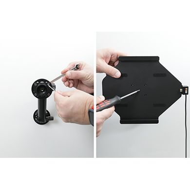Държачът е много солиден, таблетът не се залепва в него и не вибрира. Държачът е с панта, която улеснява завъртането на таблета в хоризонтално или вертикално положение, както и накланянето му по всяко време. Монтажът се закрепва към ProClip на Brodit или към монтажни основи и рамена на Brodit.