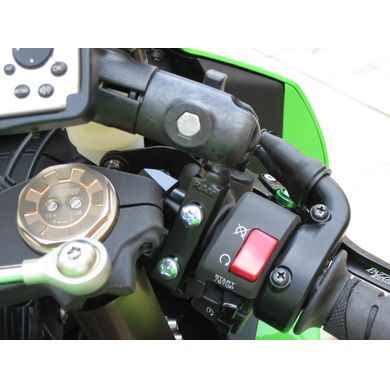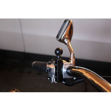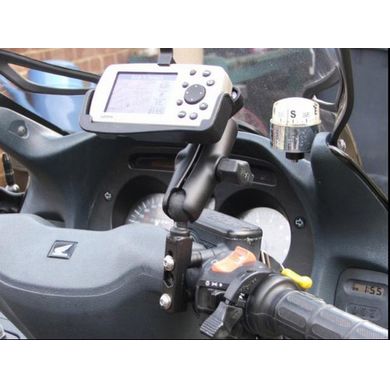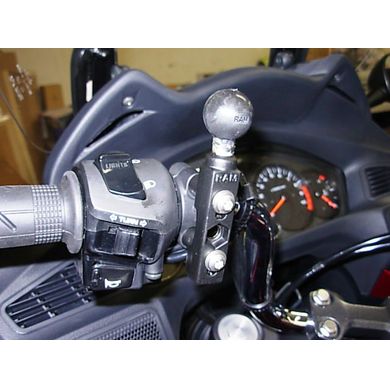 Монтаж на RAM за мотоциклет или скутер върху левия или десния лост на спирачката и съединителя. Разстоянието между отворите трябва да е между 23,9 и 40 mm. Патентованият 1" шип е изработен от висококачествена гума, която абсорбира ударите и вибрациите, които иначе биха се предали на прикрепеното електронно устройство.
