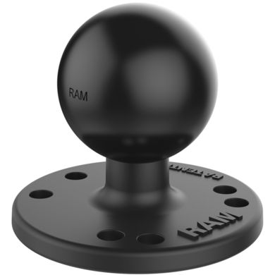 RAM-202U кръгъл адаптер / ръкохватка за плоски повърхности с 1,5" щифт. Адаптерът е с диаметър 6,35 cm и има 7 предварително пробити отвора, 4 от които са в съответствие с индустриалния модел на отворите на AMPS.