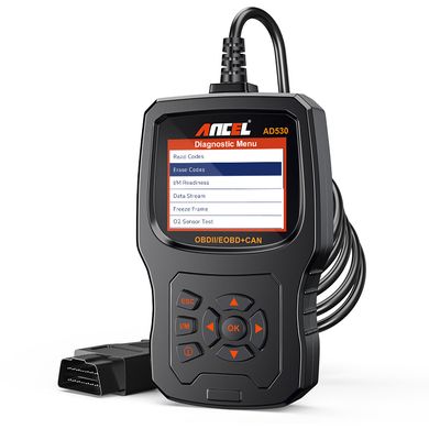 Ancel AD530 е професионален инструмент за диагностика OBD2, който предоставя широк набор от функции за точно и бързо идентифициране на проблемите с автомобила. Това модерно и многофункционално устройство е оборудвано с поддръжка на всички 10 сервизни режима OBD2, което го прави идеален избор не само за професионални механици, но и за напреднали домашни потребители, които се нуждаят от задълбочена диагностика на своя автомобил. Диагностичният скенер Ancel AD530 е усъвършенствана версия на AD310 и възможностите му са тествани и доказани върху над 300 000 автомобила. Това устройство не само проверява за повреда на двигателя и дава препоръки за поддръжка, но също така служи като професионален тестер на акумулатора, който може да провери състоянието на автомобилния акумулатор. Това превръща AD530 в истински скенер „2 в 1“, тъй като притежаването на AD530 е равносилно на притежаването на AD310 и на професионален тестер за батерии.