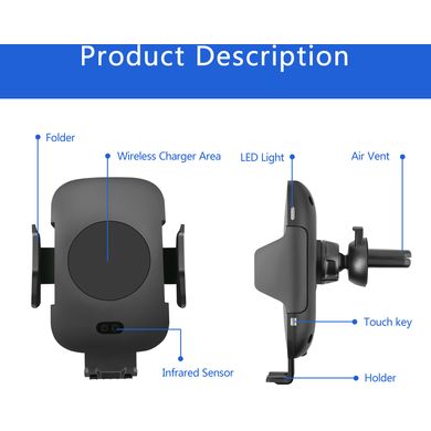 C9 държач с безконтактно отваряне и 10W безжично Qi зареждане във вентилационната решетка + с вендуза