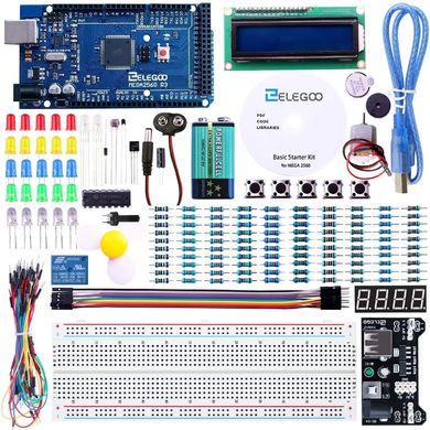 Стартовият комплект MEGA Basic от Elegoo е предназначен за деца на възраст над 10 години, като в 16 лесни за разбиране урока ги учи на основните настройки на софтуера за програмиране IDE, на неговата работа и на управлението на сензори с помощта на контролната платка UNO Mega 2560 R3. Включената платка за управление е висококачествена реплика на платформата Arduino, 100% съвместима с официалната среда за разработка на Arduino и софтуера за програмиране ElegooKit, и може да се използва като мозък на почти всеки електронен проект. Той може да комуникира с бутони, светодиоди, двигатели, високоговорители, GPS устройства, камери, интернет и дори с вашия смартфон или телевизор. Чрез свързване на контролната платка към персонален компютър с USB кабел и качване на програми в нея можете лесно да създавате цифрови устройства и интерактивни обекти, които могат да усещат и управляват обекти във физическия и цифровия свят, като например роботи или дори машини за гадаене, базирани на математически изчисления на вероятността.