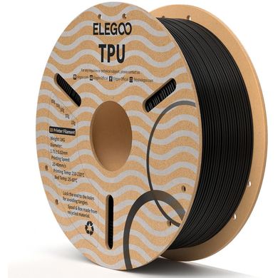 Влакното за печат Elegoo TPU има ненадмината гъвкавост и еластичност с твърдост по Шор 95А. То може да се разтяга до пет пъти повече от първоначалния си размер, без да се скъса. Влакното проявява добра устойчивост на износване, абразия, химикали, UV лъчи и масла, което го прави подходящо за функционални части и прототипи, които трябва да издържат на многократна употреба или тежки условия.
