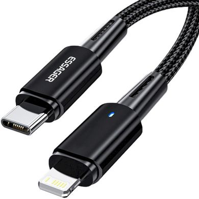 Essager Sunset USB-C/Lightning 20W кабел за зареждане с 480Mbps трансфер на данни и 24-фибърна PP оплетка за устройства на Apple.