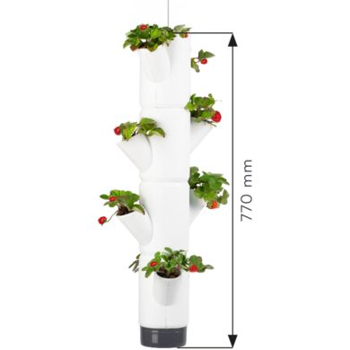 Представяме ви удобното решение за домашно отглеждане на ягоди! Този иновативен дизайн с височина 77 см може да се обяви без усилие по практичен и модерен начин. Не се изисква градина или обширно пространство. С висящата система за ягоди Sissi се нуждаете само от малък балкон или тераса, за да отглеждате собствените си питателни плодове. Засаждането също е бързо и леснос ягодите Sissi за окачване. Издърпайте стоманеното въже през основата и след това през първото ниво. Уверете се, че нивото е запълнено със субстрат, и поставете избраните **ягодови растения в страничните отвори. След това издърпайте въжето през следващия етаж, поставете пръстта и повторете процеса.
