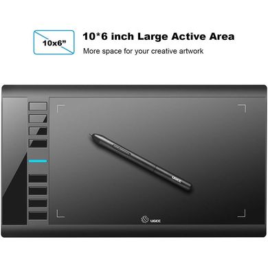 Цифров графичен таблет UGEE M708, работна повърхност 10×6", със стилус без батерия, 8 бързи клавиша, поддръжка на 60° наклон, идеален за художници и дизайнери.
