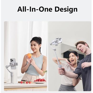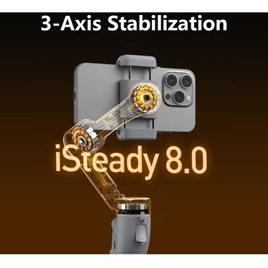 Това е особено ценено от създателите на селфи видеоклипове, влогове и групови снимки. Пръчката ви позволява да снимате от по-голямо разстояние и да уловите по-добре всички участници в сцената и заобикалящата среда, без да е необходимо да използвате външен селфи стик. Телескопичният дизайн също така осигурява лесно регулиране на дължината и компактен размер за съхранение. Стабилизаторът има изключителна съвместимост с широка гама смартфони.Благодарение на увеличения въртящ момент на моторите той може да се справи и с по-големи и по-тежки устройства с тегло до 300 грама и максимална дебелина 12,5 мм. Той може лесно да стабилизира и усъвършенствани фаблети като iPhone 15 Pro Max или Huawei Mate 60 Pro. Следователно няма нужда да се притеснявате за ограничена използваемост поради размера на телефона. Усъвършенстваният алгоритъм iSteady 8.0 се грижи за прецизното стабилизиране на изображението. Той анализира данните от вградените жироскопи и акселерометри и оценява и компенсира нежеланите трептения и вибрации в реално време. Резултатът е плавни и професионално изглеждащи кадри без трептения и размазване, дори при трудни условия, като ходене на терен, снимане в движение или използване на динамични движения на камерата. Интелигентните функции за проследяване на лица и обекти също са специална характеристика на този модел.