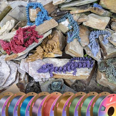 PLA нишка с преливащ ефект, променяща цвета си в зависимост от ъгъла на светлината. Фин прах вместо брокат, лесен печат. 1,75 мм, 1 кг, екологична шпула.