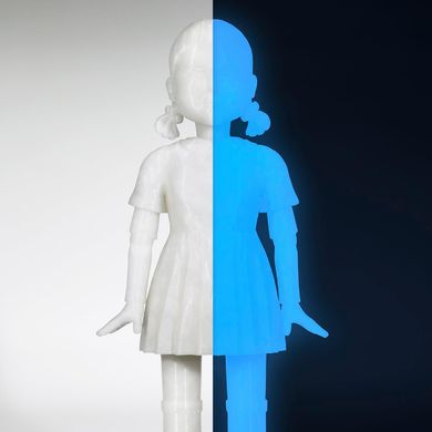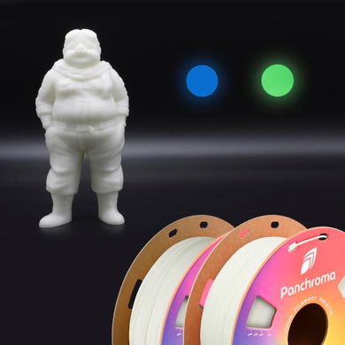 Polymaker Panchroma PLA Glow е усъвършенствана фосфоресцираща нишка, която елегантно съчетава практическата използваемост на стандартния PLA със завладяващия визуален ефект на светене в тъмното. По-рано разпространяван като PolyLite Glow PLA, този материал претърпя значителна еволюция като част от пренастройването на продуктовото портфолио на Polymaker и сега представлява неразделна част от премиум гамата Panchroma.Ключова характеристика на този филамент е неговата двойна визуална идентичност, при която на дневна светлина той показва естествен, неутрален цвят, докато на тъмно разкрива интензивна синя луминесценция, която създава драматичен контраст и привлича вниманието. Тази трансформация е нещо повече от естетически ефект, тъй като дава възможност за функционални приложения в области, където комбинацията от скритост през деня и видимост през нощта е ключова характеристика. Технологичната основа на този материал се крие в прилагането на подобрена формулировка на PLA+, която представлява значителен напредък в сравнение със стандартния PLA чрез оптимизиране на молекулярната структура и добавяне на специални добавки, които подобряват механичните свойства и обработваемостта.