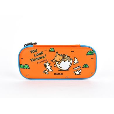 Едноетажният ученически моливник е оборудван с много класически гумени дръжки за химикалки, пастели или маркери и два джоба за линийка, компас или ножица. Моливникът е водоустойчив и издържа на грубо боравене. Моливникът включва 15-сантиметрова линийка с мотив на динозавър, която се съчетава идеално със самия моливник.