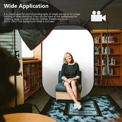 Той е идеален за уроци за видео в YouTube, видеоклипове на живо, интервюта, корпоративна портретна фотография, продуктови и паспортни снимки и др. Издръжливата рамка от пружинна стомана, зашита в плата, позволява на фона да се разшири за секунди и помага да запази формата си. Тя се сгъва в малка и кръгла чанта с цип, която е много практична за съхранение и лесна за пренасяне. Той няма да заема много място за съхранение и размерите му в сгънато състояние са много малки. Този фон може да се окачи на статив или кука с помощта на пръстена, разположен отгоре. Може да се опре в стена или вратаи да запази формата си, без да се мачка.