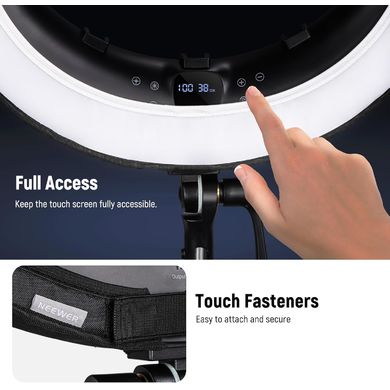 18,9-инчовата постоянна кръгла фотосветкавица Neewer RP19H разполага с панел с докосване и LCD екран, които позволяват лесно регулиране на яркостта и цветовата температура. Pro За да активирате, просто натиснете и задръжте бутона за захранване. Вграденият LCD дисплей удобно показва индексите на яркостта и цветната температура за по-лесна работа. Общо 512 SMD светодиода осигуряват отлична осветеност с цветна температура от 3200К до 5600К, CRI 97+, TLCI 98+, регулируема яркост от 0 до 100% и фина настройка на стъпки от 1%. Този комплект осветление е идеален за влогърство, излъчване на живо и правене на селфита.