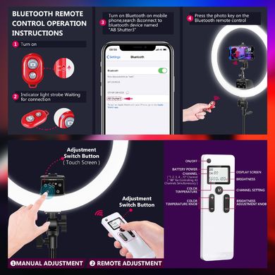 Кръглата 18-инчова светлина Neewer SRP18–2.4G е основен инструмент загрим, маникюр, селфита, портрети и влогърство. Благодарение на 272 SMD светодиода и висок CRI от 95+, тя може да създадемеко, нетрептящо осветление, което озарява лицето ви, омекотява петната и гарантира, че ще изглеждате привлекателни с естествена, гладка кожа. Капацитивните сензорни бутони за управление ви позволяват да регулирате нивата на яркост от 10% до 100%, да настройвате точно цветовата температура от 3200К до 5600К и да включвате/изключвате светлината.