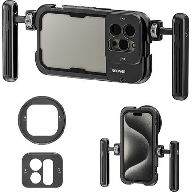 Neewer PA023 клетка за ултрастабилизиране за снимане на видео с iPhone 15, 15PRO, адаптер за монтиране на оптичен филтър с 67 мм резба, 4 гнезда за шейни