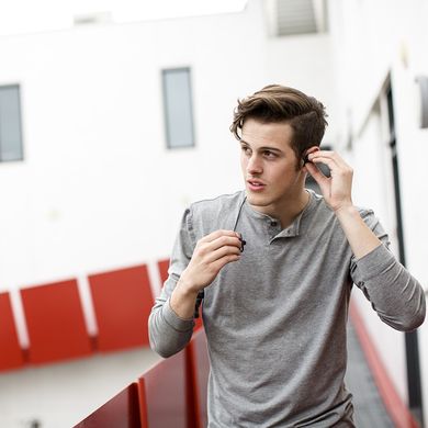 Scosche bluetooth спортни слушалки с микрофон и управление sportclipAIR, синьо-сиви