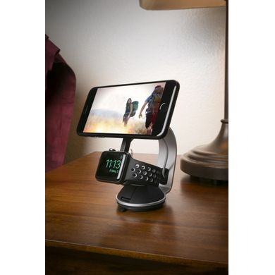 Елегантна стойка за всеки офис или дом. Той придава уникален вид на работното ви място и осигурява удобството да имате мобилното си устройство под ръка. Телефонът или таблетът ви се задържат върху сандъчето с помощта на няколко силни магнита, така че няма опасност от изплъзване и телефонът ви винаги ще бъде под ръка. Магнитната глава на държача може да се накланя, така че телефонът винаги да е в правилната позиция. Производителят предлага подвижен магнитен държач за смарт часовници Apple, който може да се превърне в удобно безжично зарядно устройство благодарение на кабел.