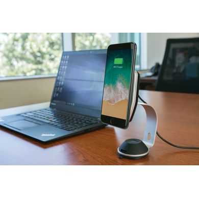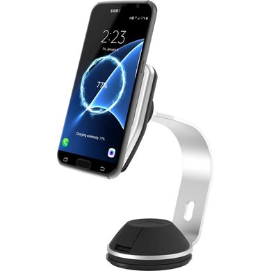 Scosche MagicMount Charge™ е магнитен държач за мобилен телефон с вендуза, например за бюро. Държачът поддържа технологията Qi с мощност до 15 W.