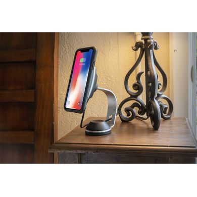 Магнитен държач за телефон, който поддържа безжично зареждане с мощност до 10 W.