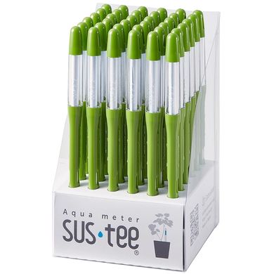 Уредът е калибриран така, че да променя цвета си от син на бял точно когато стойността на pF се доближи до критичната стойност от 2,0, което показва необходимостта от поливане. Дизайнът на хигрометъра демонстрира японска прецизност и внимание към детайлите. Тънкият корпус, изработен от висококачествен поликарбонат, осигурява дълготрайна устойчивост на механични повреди и химични въздействия в субстрата, а минималистичният дизайн е съобразен с естетиката на съвременните интериори.Сърцевината на инструмента, съдържаща индикатора, е изработена от естествени памучни влакна, които осигуряват точно абсорбиране и измерване на влагата чрез капилярен ефект, като тази технология елиминира необходимостта от каквото и да е външно захранване или батерии. Инсталирането и използването на SUStee е образцова демонстрация на удобство за потребителя. Устройството просто се поставя в субстрата на дълбочина, съответстваща на размера на саксията, където остава трайно монтирано, без да оказва отрицателно въздействие върху кореновата система на растението. След поливане индикаторът променя цвета си от бял на син в рамките на двадесет до тридесет минути, като визуално потвърждава, че субстратът е достатъчно хидратиран.