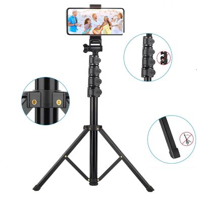 Статив за фотоапарати, видеокамери и мобилни телефони, резба 1/4 за статив, държач за телефон, макс. височина 172 см, може да се използва като селфи стик, дистанционно управление