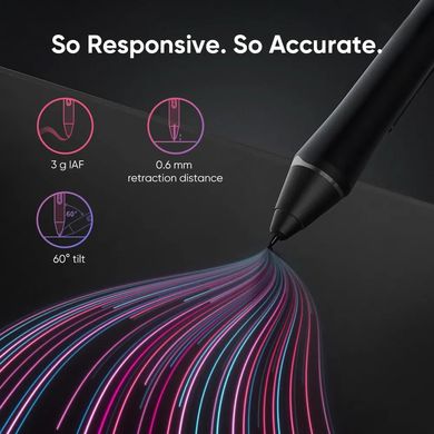 XPPen заместваща писалка за стилус X3 Elite Pro не изисква батерии или зареждане и позволява дълги часове непрекъснато рисуване. Той се захранва от интелигентния чип X3 без пружинен механизъм. С16384 нива на чувствителност към натиски функция за накланяне на 60 градусаще имате лесен и интуитивен контролпри създаването на произведения на изкуството. Превключването с едно щракване на мишката позволява незабавно превключване между режимите на писалка и гума, което оптимизира работния процес. Има и 2 персонализируеми бързи клавишни комбинации. Стилусът е предназначен за таблети за рисуване XPPen Artist Pro14 (2. поколение), XPPen Artist Pro16 (2. поколение) и XPPen Изпълнител 22 Plus.