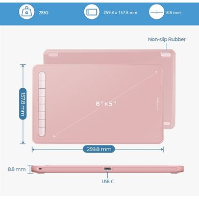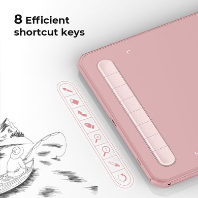Таблетът за рисуване Deco M е оборудван и с осем клавиша за бърз достъп, които могат да се адаптират към различните необходими клавишни комбинации, като заместват клавиатурата на компютъра ви. Асортиментът от тактилни изпъкналости на клавишите ви позволява бързо да идентифицирате правилния клавиш за бърз достъп, дори на тъмно, което ви помага да ускорите работата си. Deco M е съвместим с Windows 7 (или по-нова версия), Mac OS X 10.10 (или по-нова версия), Android 6.0 (или по-нова версия), Chrome OS 88 (или по-нова версия) и Linux. Той може да работи еднакво добре с повечето основни художествени софтуери, включително Photoshop, Illustrator, SAI, GIMP, Krita, MediBang Paint, FireAlpaca, Blender и др.