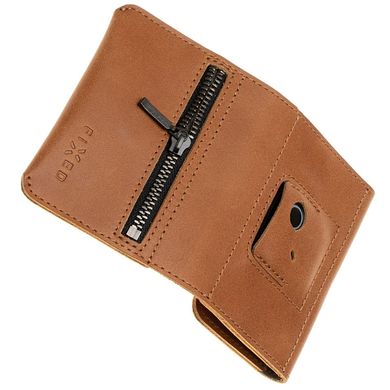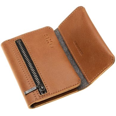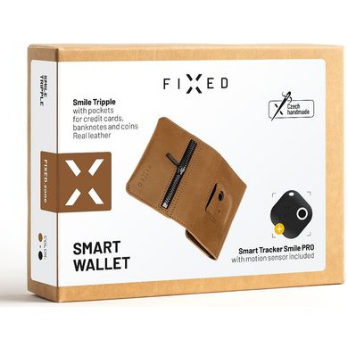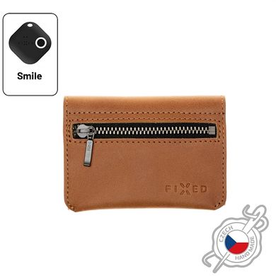 FIXED Smile Трипластов ръчно шит кожен портфейл с интелигентен тракер FIXED Smile Pro, кафяв