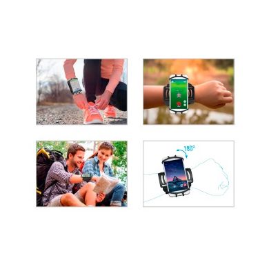 Практична ергономична каишка за китката за целодневно носене на смартфона. Той е съвместим с всички видове мобилни телефони от 4' до 6''. Завъртането на 180 градуса ви позволява да използвате телефона и в хоризонтално, и в хоризонтално положение. Прикрепена е с дишаща и неплъзгаща се гривна, която приляга идеално на всяка китка.