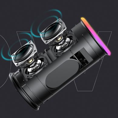 Мощен безжичен високоговорител с мощност 20 W, RGB подсветка, сертификат IPX6, USB-C, капацитет на батерията 4000 mAh, време за възпроизвеждане до 10 часа.