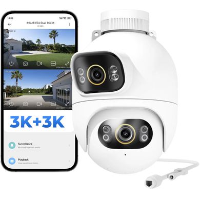 Търсите ли камера, която да следи всяко кътче от дома ви? IMILAB EC6 Dual 3K+3K ви осигурява усъвършенствана защита с чифт независими обективи, ултраостра 3K резолюция и интелигентно AI разпознаване на движение. Това ѝ позволява да наблюдава две различни зони едновременно – горният обектив следи статични кадри, докато долният обективавтоматично се завърта на 360° в отговор на движение. В комбинация с цветно нощно виждане и интелигентни функции за сигурност ще получите ясен поглед върху всичко, което се случва около дома ви – денем или нощем.