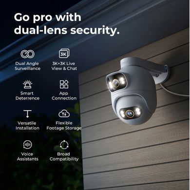 Външна камера с двойка независими обективи, интелигентно разпознаване на движение с изкуствен интелект, резолюция 3K, цветно нощно виждане, IP65, поддръжка на microSD