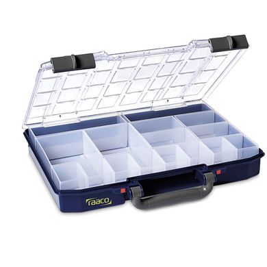 Вградената дръжка улеснява пренасянето на кутията. Освен това кутията може да понася товаридо 8 кг, което я прави надежден помощник не само в работилницата, но и в движение. Тя може да се комбинира със системата Raaco CarryMore. Тази кутия е идеалният избор за всеки, който трябва да държи винтове, крепежни елементи или малки инструменти под ръка и перфектно организирани.