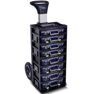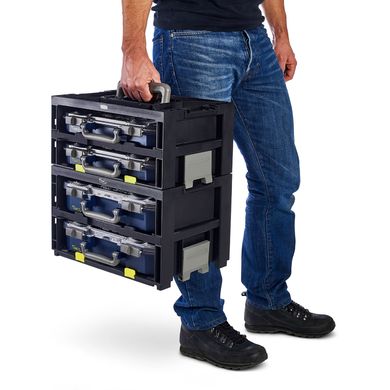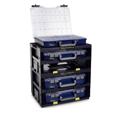 Системата включва 2 кутии CarryLite 55 4×8–16, които предлагат достатъчно място за малки части, винтове или инструменти. Благодарение на интелигентния дизайн всичко остава грижливо разделено и винаги готово за употреба.
