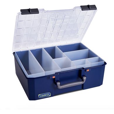 Трябва ли винаги да съхранявате малки части, крепежни елементи или инструменти, които да са ясно подредени и безопасно съхранени? Raaco Deep CarryLite 150 е здрав куфар за пренасяне, който благодарение на интелигентната си система за вмъкване,издръжливите материали и надеждното затваряне гарантира ред и лесна работа дори при честа употреба.