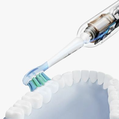 Четката за зъби разделя устата ви на четири зони и използва светлинен индикатор, за да ви информира коя зона все още трябва да бъде почистена – непочистената част от устата ви свети в червено. Освен това вграденият таймер ви подканя да сменяте зоните навсеки 30 секунди, а след две минути нежна вибрация ви предупреждава за края на препоръчителното време за почистване. Сензор за натиск ви предпазва от прекалено силен натиск, който може да увреди венците ви.