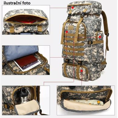 Армейска раница, тип клетка, обем 80 л, много джобове и места за съхранение, система MOLLE за свързване на допълнителни джобове, колани за кръста, водоустойчива