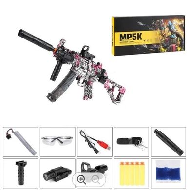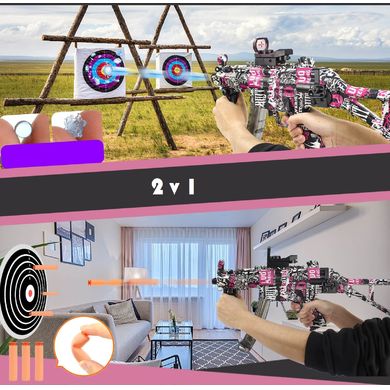 Пистолет за водни куршуми с гел, подходящ за дейности на открито, от 14-годишна възраст, обхват около 15 метра, акумулаторна батерия, честота 7–8 изстрела в секунда, сгъваем приклад