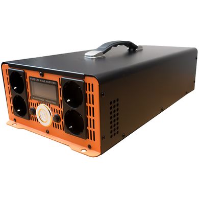 Инвертор от 12V до 230V, изход 4× гнездо 230V, захранване от автомобилен акумулатор, мощност 3000W, кратковременно до 6000W, 2× вентилатор, чиста синусоида, LCD