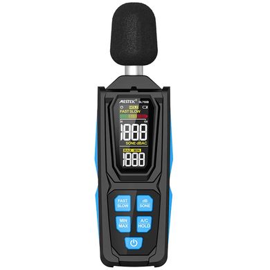 Цифров шумомер с лесно управление, ясен LCD дисплей, обхват на измерване 30–130 dB, честотна характеристика 31,5 Hz-8 kHz, автоматично изключване