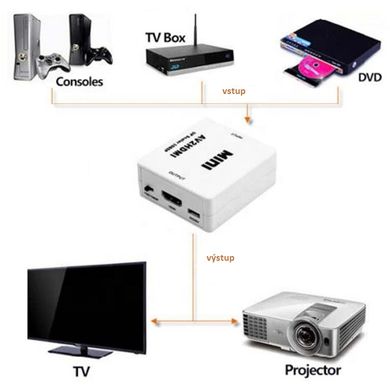 Мини конвертор от RCA сигнал ( видео и аудио ) към HDMI изход с резолюция 720p или 1080p