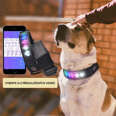 LED нашийник за кучета с прожектиране на текст чрез приложение, черен