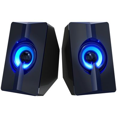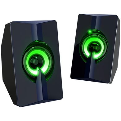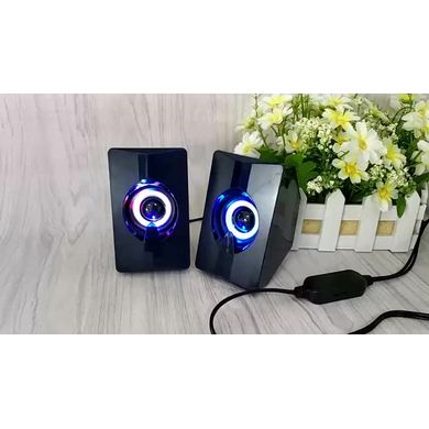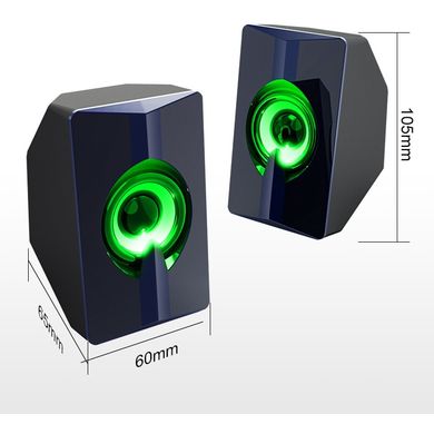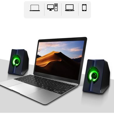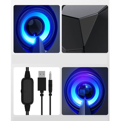 Мини кабелни високоговорители, 6 W, 2 канала, 52 мм драйвер, RGB светлинен ефект, честотен диапазон 20 Hz-20 kHz, дължина на кабела 1,2 м, USB и 3,5 мм връзка