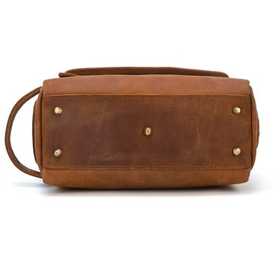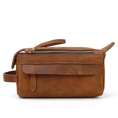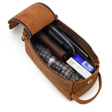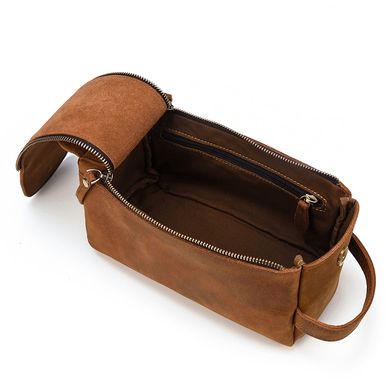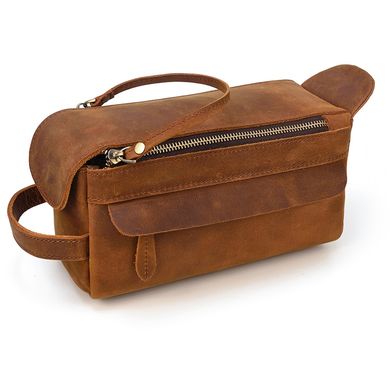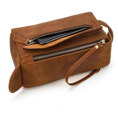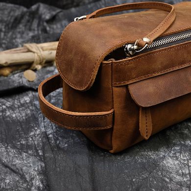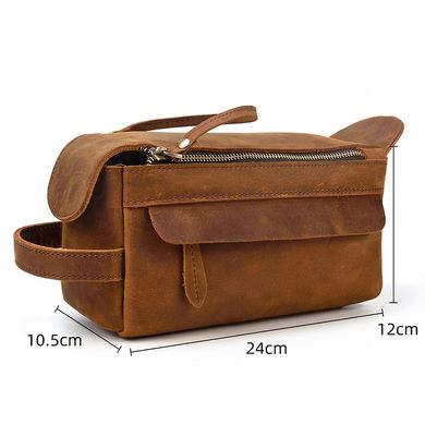 Кафява козметична чанта, кожен материал, унисекс, ретро стил, затваряне с цип, един малък вътрешен джоб, външен джоб, размер 240×105×120 мм