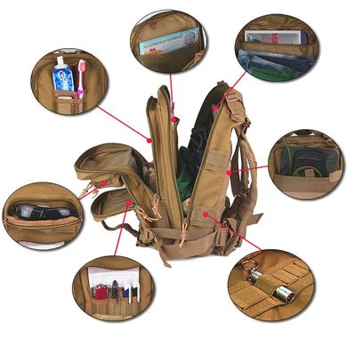 | Характеристики на раницата | регулеруеми презрамки, таен джоб за ценности, MOLLE аксесоари |