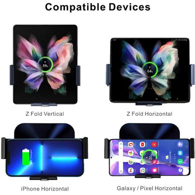 Стойка с безжично зареждане за Samsung Galaxy Z Fold3 – Fold7, електронно затваряне и отваряне, подходящ за стъкло и вентилационна решетка, зареждане до 15 W